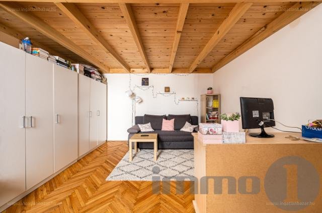 „Eladó sorba került ez a 34 négyzetméteres, 2. emeleti, udvari, világos, galériás, ablakos konyhás, folyosó végi, hangulatos, egy szobás kis garzon lakás remek közlekedés mellett. A VI. kerület külső részén járunk, közel a Városligethez, Westendhez, Andrássy-hoz. Ez a lokáció egyben a remek közlekedést is magával hozza, trolik, buszok, és a metró is pár perc sétára van.