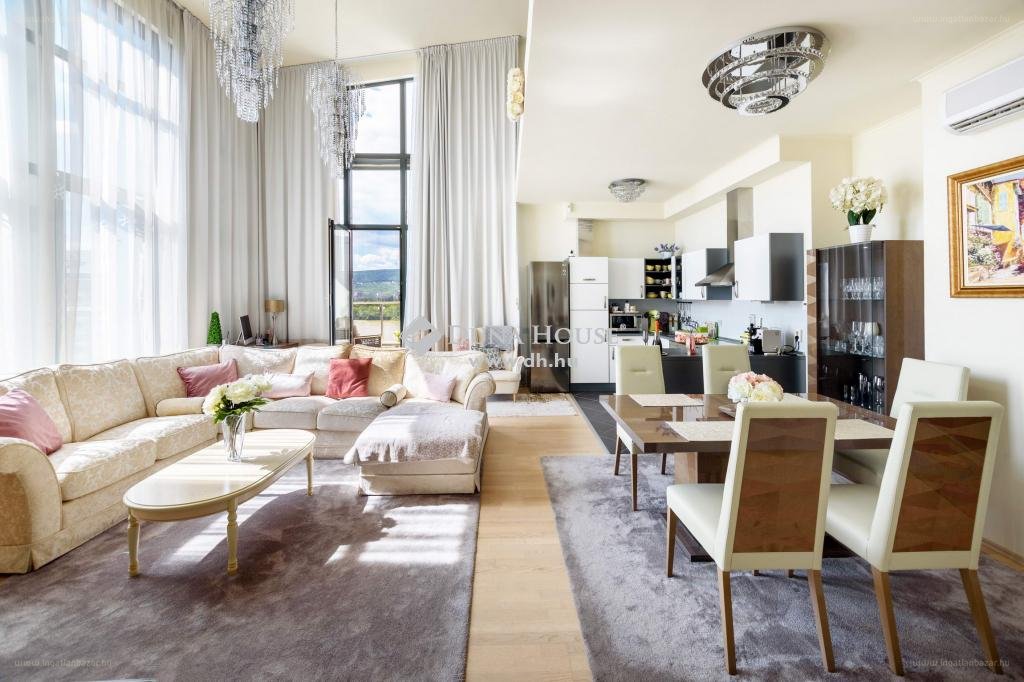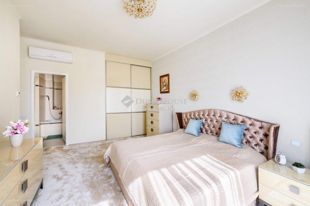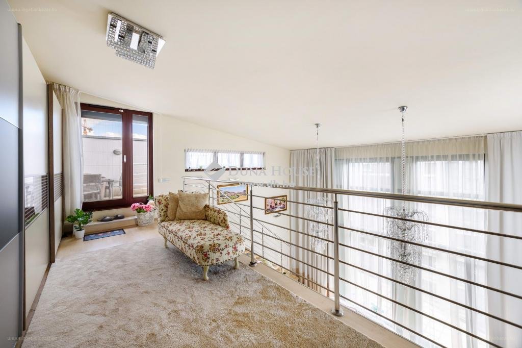 „Örök panorámás Penthouse a Marina Parton! Ha a Duna látványára szeretne ébredni, vagy a Bazilikában, esetleg a Szabadság szoborban gyönyörködne, akkor ez a luxus, belső kétszintes Penthouse csak Önre vár! A napfényes 9. emeleti, belső kétszintes lakás csendes, nyugodt környezetben található. A 135 nm-ben dupla hálószoba (az egyik fürdőszobával), dupla fürdőszoba, dupla erkély, amerikai konyha + nappali, a felső szinten egy szoba van, mely akár irodaként, gardróbként vagy olvasószobaként is funkcionálhat. Légkondicionált, bútorozott és gépesített, riasztóval, biztonsági ajtóval, valamint elektromos redőnnyel felszerelt. Az árban magába foglal 1 darab teremgarázshelyet is. A környéken bolt, játszótér, fitneszterem is megtalálható.”
