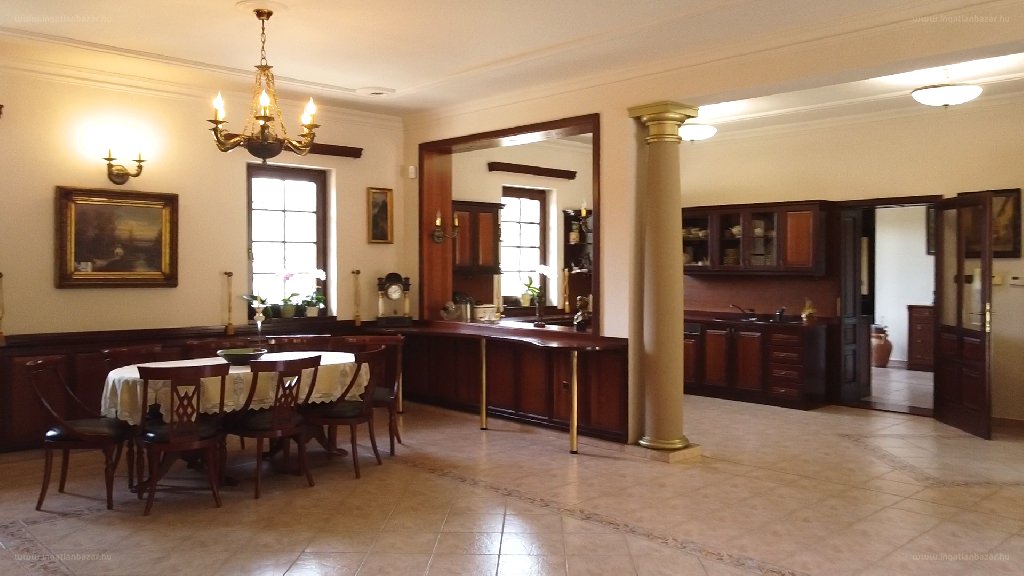 A komplexumhoz tartozik még egy 1500 m2-es istálló, amelyben egy 100 m2-es külön lakrész lett kialakítva az ott dolgozók számára. A lakrészben konyha+nappali, 2 szoba, egy zuhanyzós fürdőszoba és egy vizesblokk található. Az istállóban 28 boksz áll rendelkezésre, illetve egy, külön a csikók számára kialakított boksz + egy fedeles lovarda rész. Ezen kívül megtalálható az istálló közvetlen közelében egy jártató gép is. A kertben számos mediterrán növény, különleges fenyő, juhar található, amelyek igazi toszkán hangulatot adnak és a területet kőkerítés veszi körül. A komplexum SAJÁT MAGÁT tartja fenn. A napelemek mellett egy 117 méter mélyen lévő fúrt kút szolgáltatja a vizet. Komfort érzetet növel a fedett úszómedence, a főépületben kiépített központi klíma rendszer, a biztonságtechnikai eszközök és a területhez igénylehető vadászati jog.[…]”