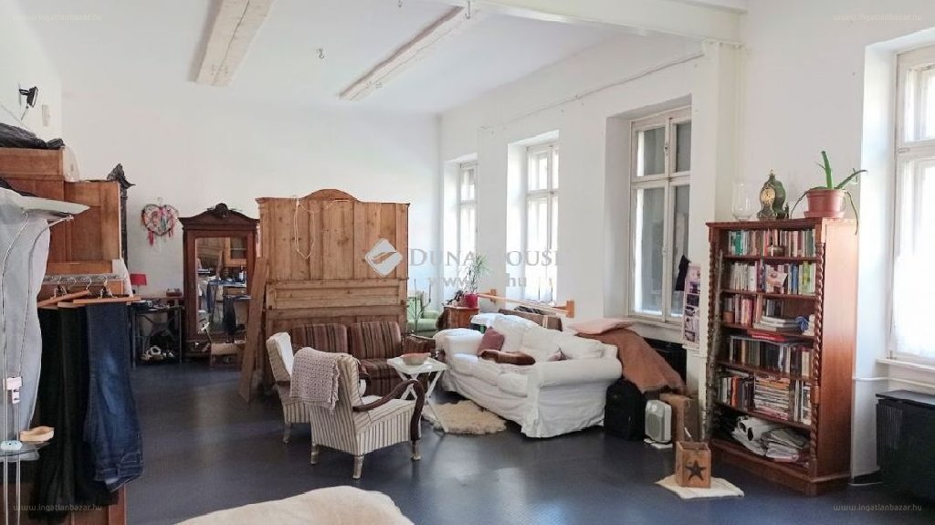 Az ingatlanba belépve egy 65 m2-es helyiségbe érünk, amit nevezhetünk szobának, vagy akár nappalinak Onnan tovább találhatjuk a fürdőt wc-vel, a konyhát, és a kamrát. A 3,8 m-es belmagasság lehetővé teszi a galériázhatóságot , de anélkül is elég tágas és világos életteret biztosít a nappali. Fűtése konvektoros, nyílászárok eredetiek, de jó állapotban vannak. […]”