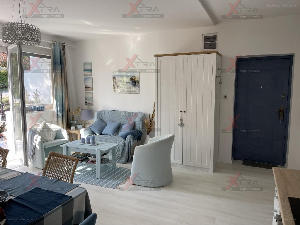 “Balatonkenese csendes utcájában, 8 perc sétára a Balatontól eladó egy teljes felújításon átesett, ízlésesen berendezett 54 m2-es, földszinti, amerikai konyhás és két szobából álló téglalakás. Saját, 158 m2-es kerttel lekerítve kizárólagos használattal eladó. A lakás téliesítve lett, 10 cm-es szigetelést kapott a felújítás során, a fűtést elektromos padlófűtés biztosítja. A megnagyobbított teraszról közvetlenül a saját kertünkbe léphetünk ahol bőven van hely a pihenésre, szórakozásra . A lakás egy négylakásos társasházban található, kb. 500 m-re helyezkedik el a település nyüzsgő központjától, ahol éttermek, üzletek találhatók. Parkolásra a ház előtt több autónak is van lehetőség. A vételár a teljes berendezést is tartalmazza. […]”