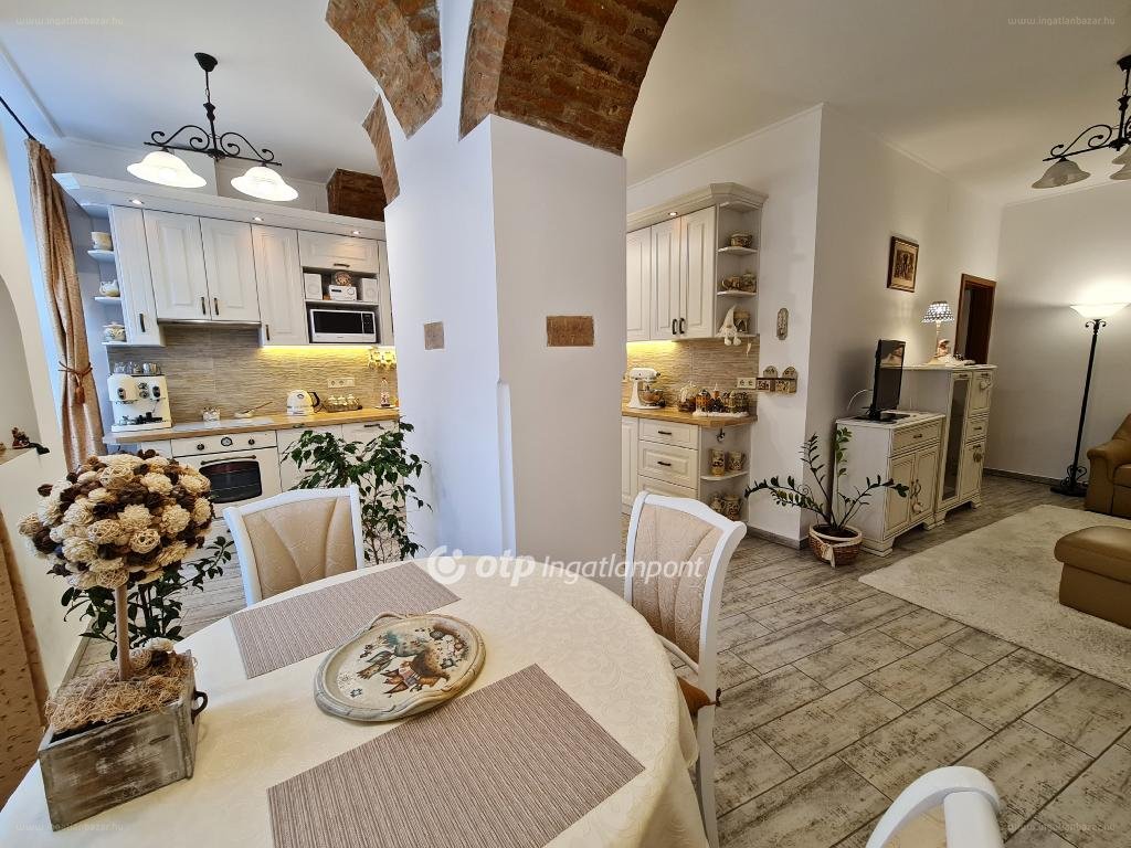 “Eladásra kínálok, Pápa város történelmi belvárosának szívében egy igényesen-teljes körűen felújított, 95 nm alapterületű, 3 szobás földszinti (lépcső mentes) tégla lakást. A lakóingatlan impozáns kivitelezésű, melynek a belsőépítészeti megoldások kivitelezése minőségi anyagok felhasználásával, ízléses formában érhetőek tetten a különböző helyiségekben.