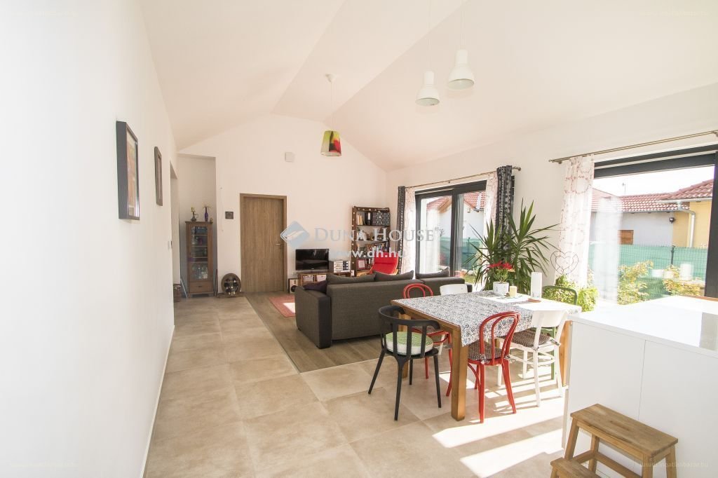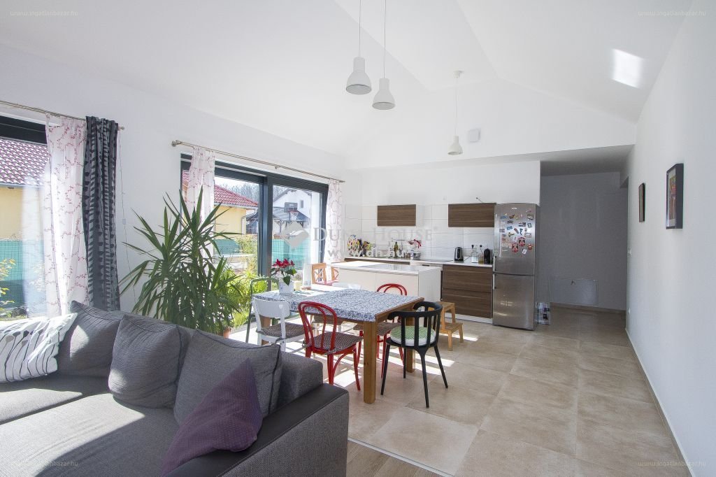 “Legjobb energetikai besorolású (AA++) alig használt ház keresi új lakóit! 2020 nyarán készült el ez a szinte önfenntartó családi ház a legmodernebb szerkezeti és gépészeti elemekkel. Az egyszintes 120 nm-es alapterületű lakótérben 4 szoba, egy tágas amerikai konyhás nappali 2 fürdőszoba kapott helyet. A házat igényes kivitelezés, szép burkolatok, tágas világos terek jellemzik. A különleges emelt boltozatú nappaliból egy térkövezett 20 nm-es teraszra juthatunk ki.