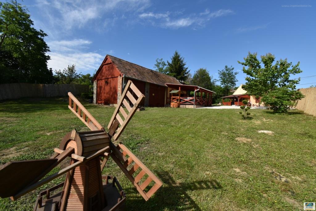 – További 40 m2 alapterületen, nagy belmagasságú pajta ad lehetőséget a bővítésre.