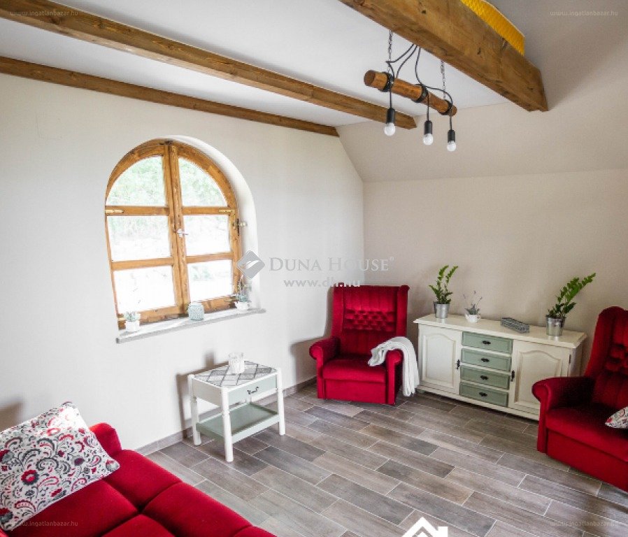 A lakótér egy amerikai konyhás nappaliból és egy fürdőszobából áll, felette két db kétszemélyes fekvőgaléria (kuckó). A terület 3 helyrajzi számon van, melyek össz alapterülete 2900 m2. Villany bevezetve, fűtését egy fatüzelésű kazán biztosítja, a hőleadás radiátorokon keresztül történik. A hegyen vezetékes víz és csatornahálózat nincs kiépítve. A telken két ciszterna is ki lett alakítva, melyből az egyikben az esővizet gyűjtik, a másikat időszakonként feltöltik iható, tiszta vízzel. Hétvégi háznak, de vendéglátáshoz is jó adottságokkal bír. Burkolt úton megközelíthető. Ideális magáncélra, de vendéglátásra, vagy szálláshelyként üzemeltetve is jól hasznosítható. […]”