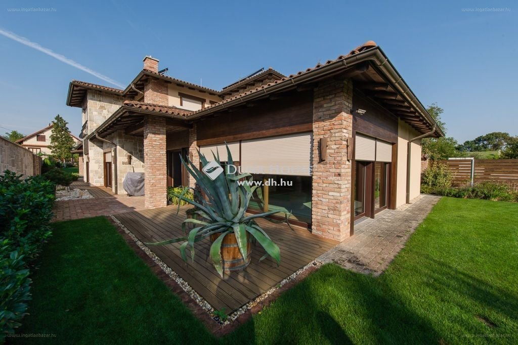 A parkosított udvar automata öntözővel van ellátva. Különleges növények, minden évszakban virágzó fák, bokrok, cserjék színkavalkádja, gyermekjátszó teszik az itt eltöltött időt felejthetetlen feltöltődéssé.Az ingatlant egyedivé teszi a földszinten lévő wellness rész, amely beépített feszített tükrű medencét ( 8 × 4 m), jacuzzi-t, pihenőteret, infra szaunát és külön konditeremet foglal magába.A tulajdonos az egyszerűbb kezelhetőség miatt az ingatlant társasházzá alakította, mely a következő egységeket foglalja magába:Egy nagy méretű gépház ami az alagsorban található, két iroda blokk teakonyhával, illetve egy 3 állásos garázs , végül egy prémium kategóriás lakrész (3 szoba+ nappali+konyha+ fürdők), plusz egy full-extrás wellness-részleg, ami a tulajdonosok kényelmét szolgálja.Az ingatlan egy időtálló, meleg hangulatú, családbarát, madárcsicsergős otthon sok-sok különlegességgel, minden igényt és kényelmet kielégít. Itt minden megtalálható amire egy igényes család vágyhat!”