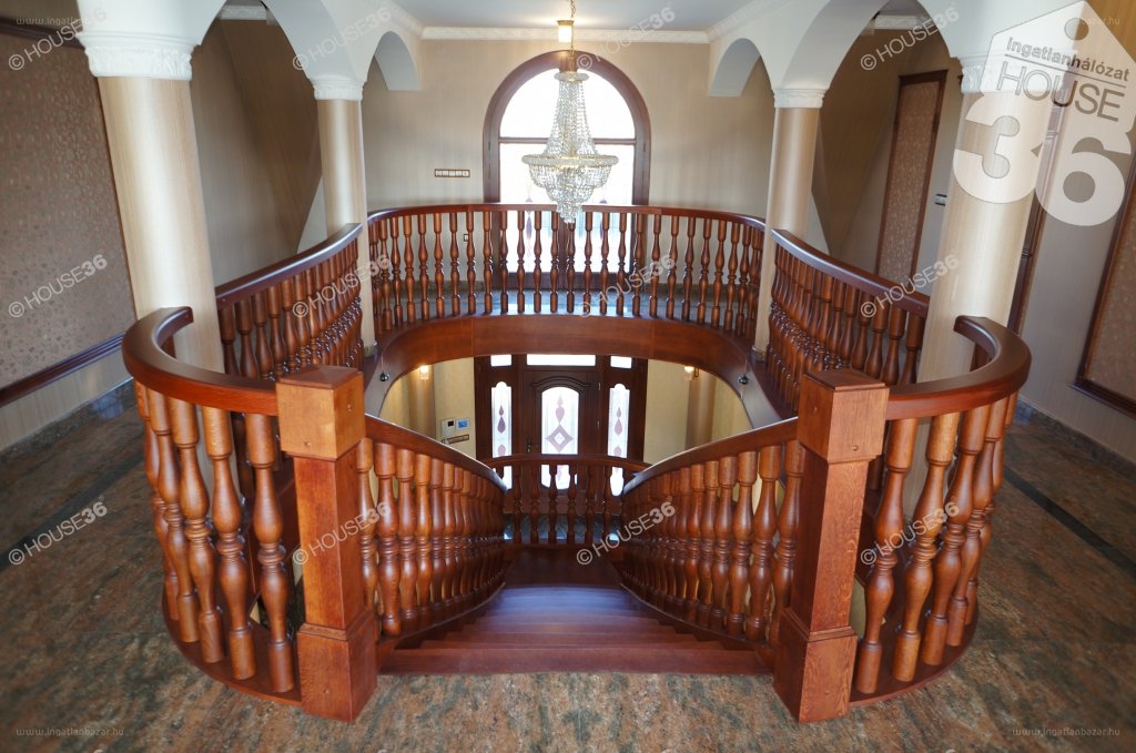“Kecskemét luxus családi házas lakóparkjában eladó 1200 négyzetméteres telken egy újszerű,minden igényt kielégítő nappali + 5 szobás,3 fürdőszobás 650 négyzetméter lakóterületű ház,dupla garázzsal.A ház lakóia jacuzzival ellátott saját wellness rész és borospince kényelmét is élvezhetik.A szintek közötti közlekedést a házban található lift könnyíti meg. A ház közvetlenül egy természetvédelmi terület szomszédságában található,tóra néző örök panorámával.