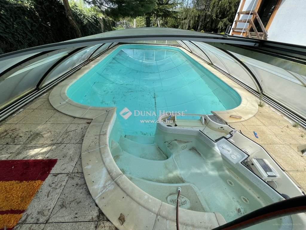 A kertben méretes, fedett medence, igényesen kialakított nyári konyha, fedett étkező rész, számos tároló, dupla garázs biztosítja, hogy rendezett környezetben pihenhessen. Az épület osztrák alpesi stílusban épült az 1900-as évek elején. Akkoriban a cukorgyár tiszti szállásaként használták.