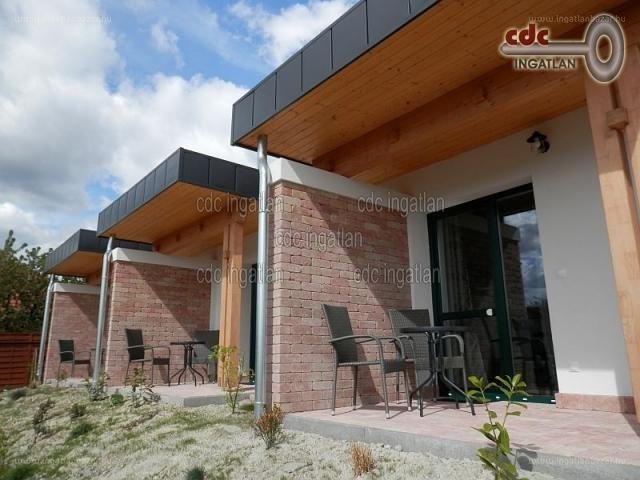 “Új építésű apartmanház GYENESDIÁSON ELADÓ! […] Az ingatlan 5db különálló, teraszkapcsolatos apartmanból áll, melyből 2db 36m2-es, 3 db 30 m2-es valamint nappali + még egy önálló szobából. Minden apartman tökéletesen felszerelt, ezzel biztosítva a vendégek kényelmét. A Gyenesdiáson álló épület kiváló anyagok felhasználásával készült. Tégla építésű, szigetelt, minőségi kővel díszített oldalfalakkal. Tetőszerkezet érdekessége a világító tetőelem, ezáltal a közösségi teret még több természetes fény éri. Minden közmű, valamint internet, kábel Tv, műholdas TV, klíma be van kötve.”
