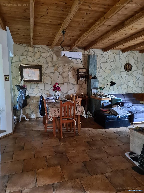 Vályog falazatú 95 nm-es, külső, belső teljeskörűen felújított, klimatizált, családi ház, jelenleg vendégházként működik, 2 szobával, étkezővel, beépített új konyhabútorral, spájzzal, zuhanyzós fürdőszobával, kandallóval, cserépkályhával, elektromos panel fűtéssel, hajópadló, kerámia burkolattal, műanyag hőszigetelt nyílászárókkal felszerelve, fedett nagy előszobával-téli kerttel, cserép tetővel ellátva!