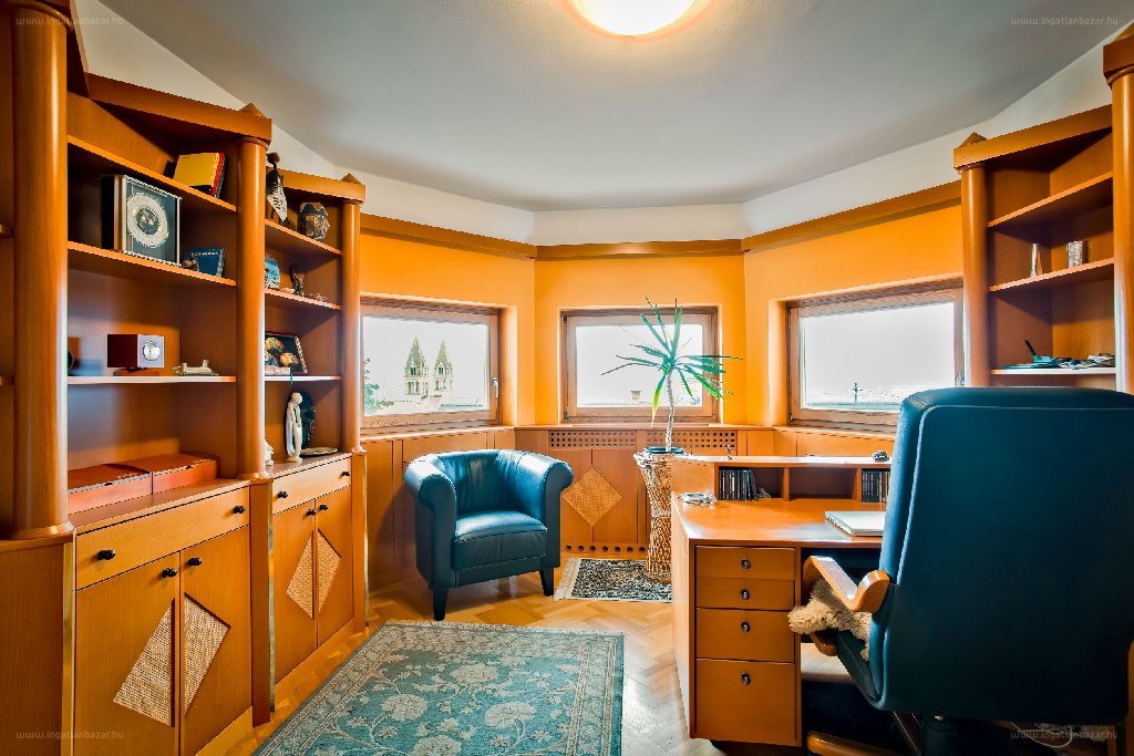 Az ingatlan észak-déli tájolású, tágas, kényelmes, páratlan kilátással a Székesegyházra, a városra. A ház 2001-ben épült minőségi, értékálló anyagfelhasználással. Nyílászárói, a lépcsők a bútorok, beépített szekrények fából készültek. A földszinti helyiségek járólappal az emeleten a szobák fa parkettával, burkoltak. A fűtés gázkazánról működik melegvizes rendszerrel az alsó szinten padlófűtéssel az emeleten radiátorokkal. Földszinti elosztás: előszoba, konyha-étkező-nappali, mellékhelyiség-kézmosóval. Az emeleten közlekedő, dolgozószoba, három hálószoba, fürdőszoba került kialakításra.