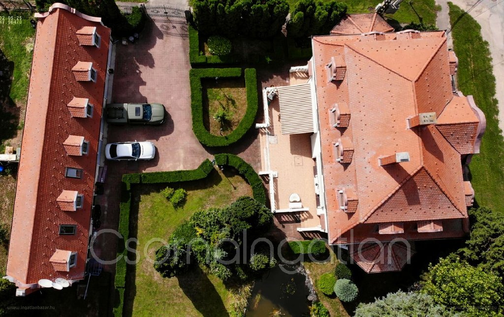 “Szilben 4 külön bejáratú lakásból álló igényes, egyedi ingatlan 2500 m2-es parkosított saroktelken eladó