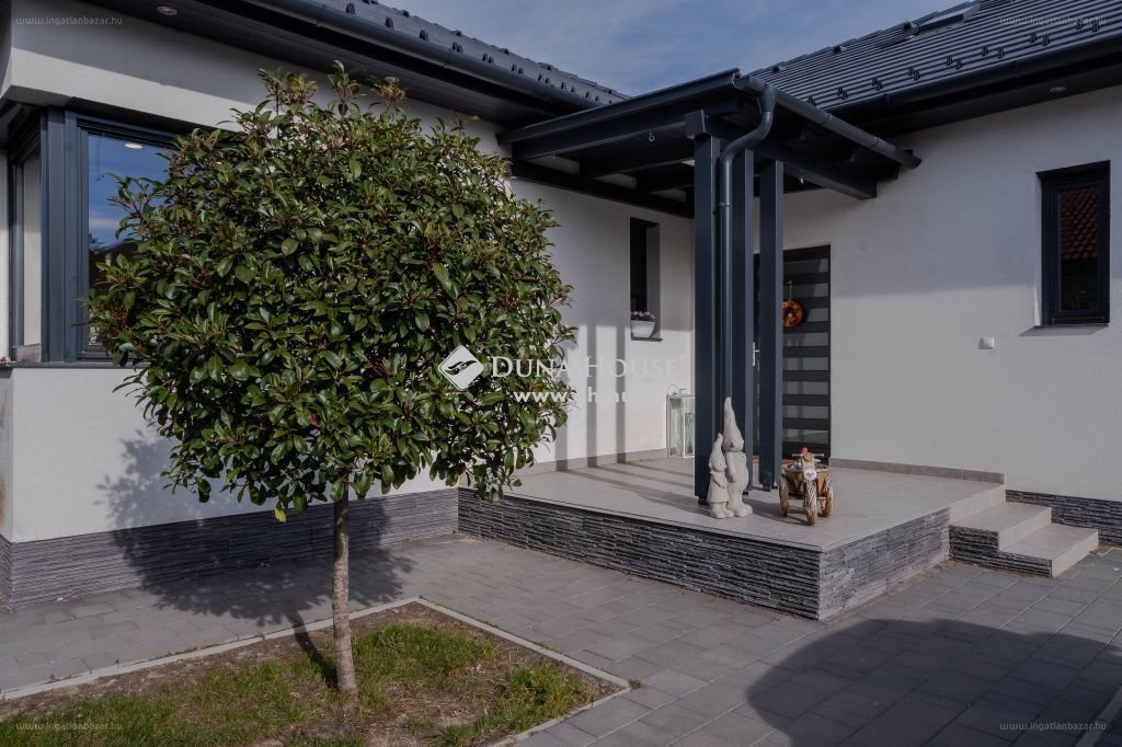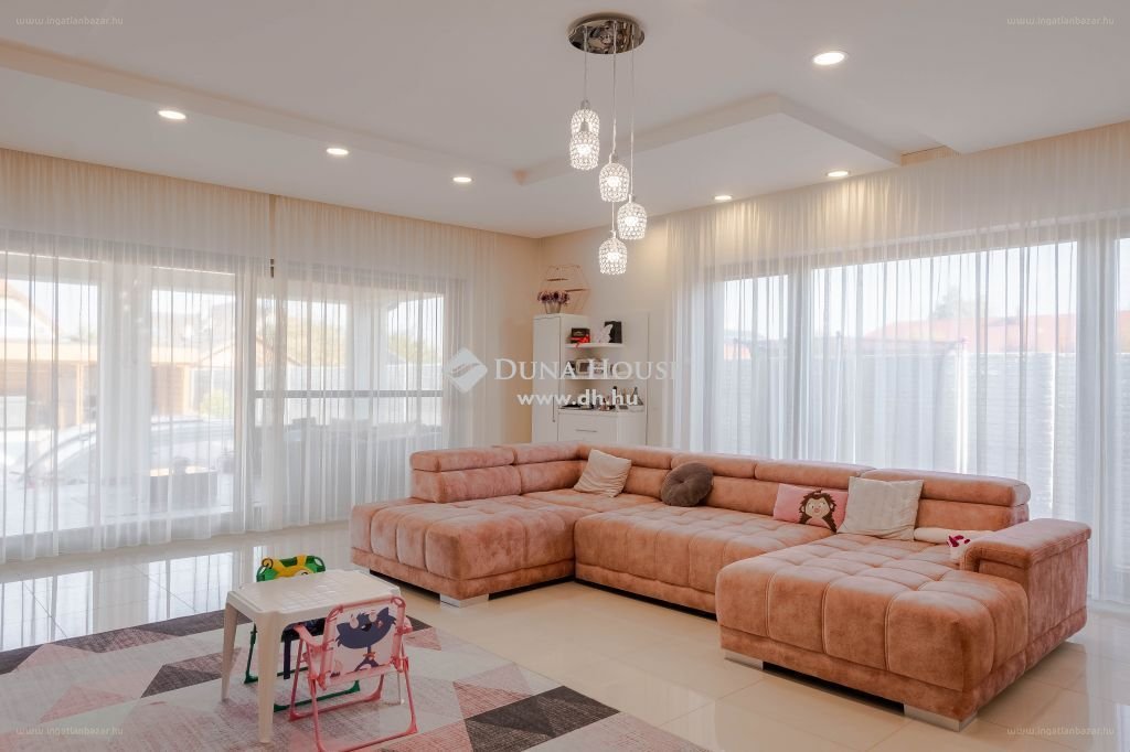 “Eladó Szolnok ‘Rózsadombján’, kertvárosi környezetben egy 3 éve épült 225 m2-es 4 hálószobás családi ház. Az épület minden tekintetben megfelel napjaink technolóiai színvonalának. Minőségi fa nyílászárók rengteg fényt engednek a belső térbe, a nappali szinte egybeolvad a kerttel, Az épület fűtése gáz cirkó kazánnal, padlófűtéssel megoldott, hihetetlenül alacsony gázszámla mellett. A tágas 62 m2-es nappalihoz két lakószárny csatlakozik 2-2 hálószobával és mindkét szárnyban tágas fürdőszoba és külön wc található, itt találhatók még a kiegészítő helyiségek mint kamra, háztartási helyiség, és gardrob. A nappali egybeépült a konyhával és az étkezővel.