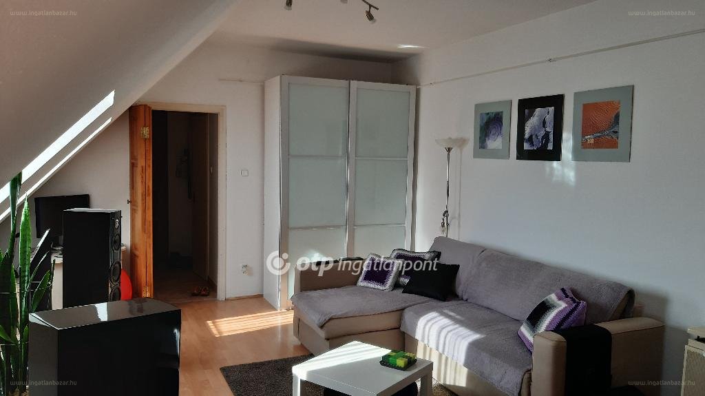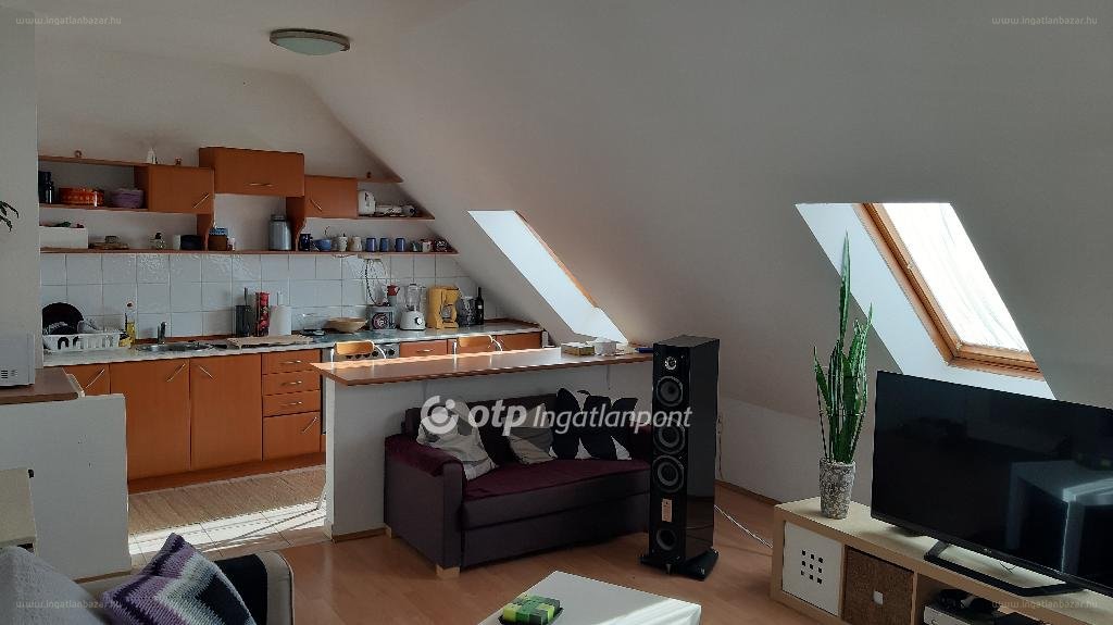 “Szolnok belvárosában megvételre kínálunk egy kitűnő állapotú, 40 m2 bruttó alapterületű hangulatos tetőtéri lakást a hozzá tartozó gépkocsi parkolóval. Az ingatlan egy nagy, jó benapozású amerikai konyhás nappalit, előszobát és egy zuhanykabinos fürdőszobát tartalmaz. A szoba laminált padlós, a többi helyiség járólap borítású. Az otthon melegét gáz konvektor, a meleg vizet Vaillant típusú gáz vízmelegítő biztosítja. A lakás akár befektetésnek is kitűnő lehetőség. Azonnal birtokba vehető, és kiadható. Az ingatlan Szolnok központjában található. A buszpályaudvar, bevásárlási, szórakozási lehetőségek, vasút állomás, gyógyszertár, orvosi rendelő, óvodák, iskolák pár perc sétával érhetők el. […]”