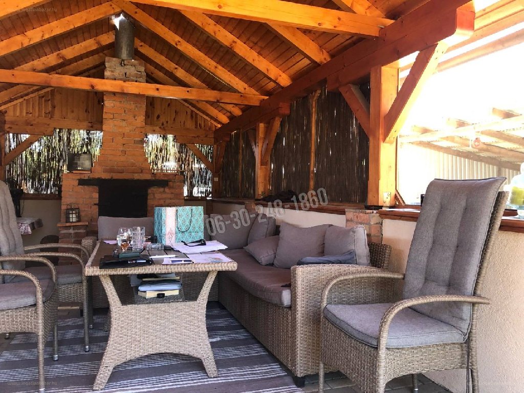 OTTHONOS, NAGY TERASZOS CSALÁDI HÁZ PARKOSÍTOTT UDVARRAL ELADÓ! A szomszédos épületektől kellemes távolságra helyezkedik el, kellő intimitást biztosítva a lakóknak. Külső és belső terei egyaránt a természetességet, otthonosságot hordozzák magukban. Ami külön értéknővelő az a megálmodott parkosított udvar ahol gyönyörű kemencés filagória és egy konyharész is szolgálja a tulajdonosok kényelmét. […] Otthonosságot sugárzó belső terek jellemzik. Az előtérből egy tágas folyosó nyílik, itt találjuk a konyhát tárolóhelyiséggel , fürdőt , wc helyiséget és egy méretes nappalit. A nappaliból egy kisebb előtérbe lépünk ahonnan két nagy hálóhelyiség közelíthető meg. A hallból egy külön nyíló gardrób helyiséget is kialakítottak.