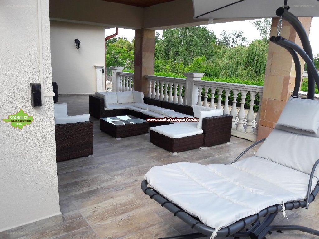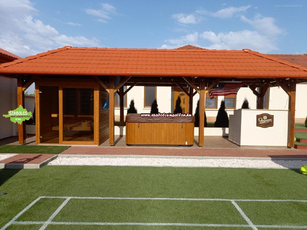 “Kertvárosi övezetben eladásra kínálok egy 210 nm alapterületű 2008 ban épült földszintes családi házat. Az ingatlan 2 állásos garázzsal, 5 hálószobával, 2 fürdőszobával ezen belül 2 hálószoba saját gardróbhelyiséggel is rendelkezik. Az 1670 nm telken helyet kapott egy 120 nm wellness épület melyben 16X3, 5 M.- es fűtött medence is helyet található. További kikapcsolódási lehetőséget nyújt a 40 nm fedett filagória melyben jakuzzi ill.szauna is szolgálja a kikapcsolódást. A ház fedett csendes teraszán lehetőség van baráti, családi összejövetelek megtartására.