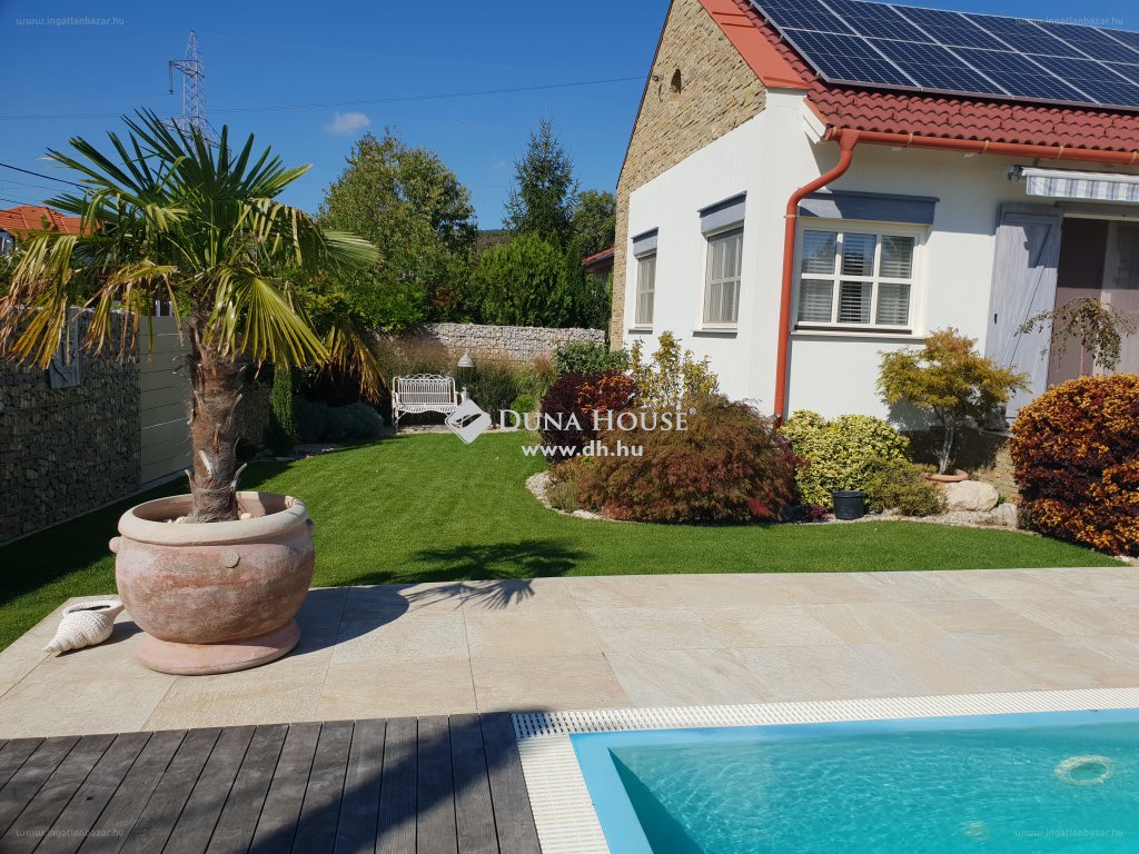 “[…] Eladó egy mediterrán stílusú luxus ingatlan! A ház 4 éve teljes, prémium minőségű felújításon esett át! […] Ahogy belépünk az előszobába egy hatalmas nappali fogad, amiben panoráma kandalló lett kialakítva, amerikai konyhával-étkezővel.4 hálószoba, 2 fürdőszoba, szauna, két gardróbszoba, mosókonyha, garázs, fedett kocsibeálló.A fűtést kondenzációs kazán biztosítja, valamint központi klímarendszer van kiépítve.A vezetékes vízhálózatra vízlágyító berendezés van kötve, ami előtt víztisztító rendszer van!Az igényesen kialakított kertben öntözőrendszer és feszített víztükrű, fűthető automata medence ellenáramoltatóval.5 személyes jakuzzi, napozóterasz, kerti lámpák, amihez az áramot a napelem szolgáltatja! Kerti zuhanyzó solar melegítéssel.Mindenhol szúnyogháló, spaletta, kézműves lámpák a házban és a kertben is, olasz prémium minőségű burkolatok, gyepszőnyeg, öntözőrendszer, gyönyörű növények.[…]”