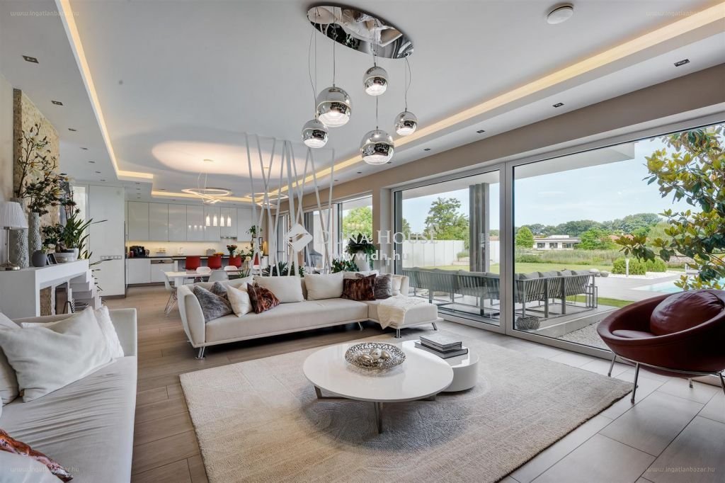 Egyik különlegessége, hogy a tó 1/24-es része tulajdoni hányad szerint e ház birtokosa. A házban közel 70 nm-es a nappali-étkező konyha hármas egysége a valódi kandallóval kiegészítve, melyek a tóra és a medencére is nézve rendkívül impozáns és megnyugtató érzést sugároznak a különleges enteriőrnek is köszönhetően. A 4 hálószoba, a 3 fürdő, a szauna, a vegyszermentes sós fedett medence, a jacuzzi, a kiváló méretekkel és tájolással rendelkező teraszok, a gardróbok, az egyedi tervezésű bútorok mind mind azt szolgálják, hogy jó legyen itthon lenni…. a szó szoros értelmében!