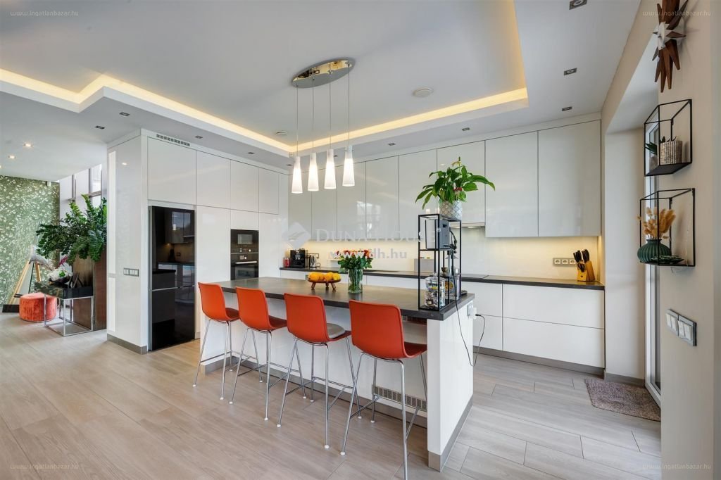 A ház tervezőjének és kivitelezőjének fontos volt a fentarthatóság fogalmának megvalósítása, így egy olyan ingatlant alkottak, melynek a havi fenntartási díja átlagban 20 e Ft, köszönhetően a használt napkollektoroknak, napelemeknek illetve a korszerű hőszivattyús rendszernek. Kivételes minőségűek a külső-belső nagyméretű nyílászárók, minden ablakfelületen elektromos zsaluzia adja fényvédést, kiemelve a modern elegancia nagy ívű életérzését.