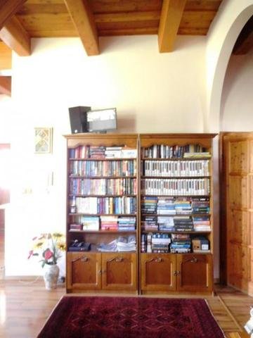 A telek jobb oldali részén található a mintegy 450 négyzetméteres ipari csarnok, amely szintén külön fűtési rendszerrel, étkező helyiséggel, két zuhanyzóval és két mosdóval rendelkezik. Bármilyen ipari vagy mezőgazdasági célra alkalmas. A nagyobb lakrész helyiségei: amerikai konyhás nappali, étkező, előszoba, folyosó, három szoba, fürdőszoba, kamra és WC. A kisebb lakrész helyiségei földszint: előszoba, folyosó, konyha, étkező, kamra, fürdőszoba, nappali; emelet: közlekedő, két hálószoba, fürdőszoba-WC. Az egyedi tervezésű ingatlan minden fa burkolata, gerendái (20x30cm), valamint egyedi tervezésű, hőszigetelt fa nyílászárói és a padló egy része vörösfenyőből készültek. A nagyobb lakás összes bútorzata és gépészeti berendezései, konyhabútor az ingatlan tartozékaként az ingatlanban marad, az a vételárban benne foglaltatik. […]”