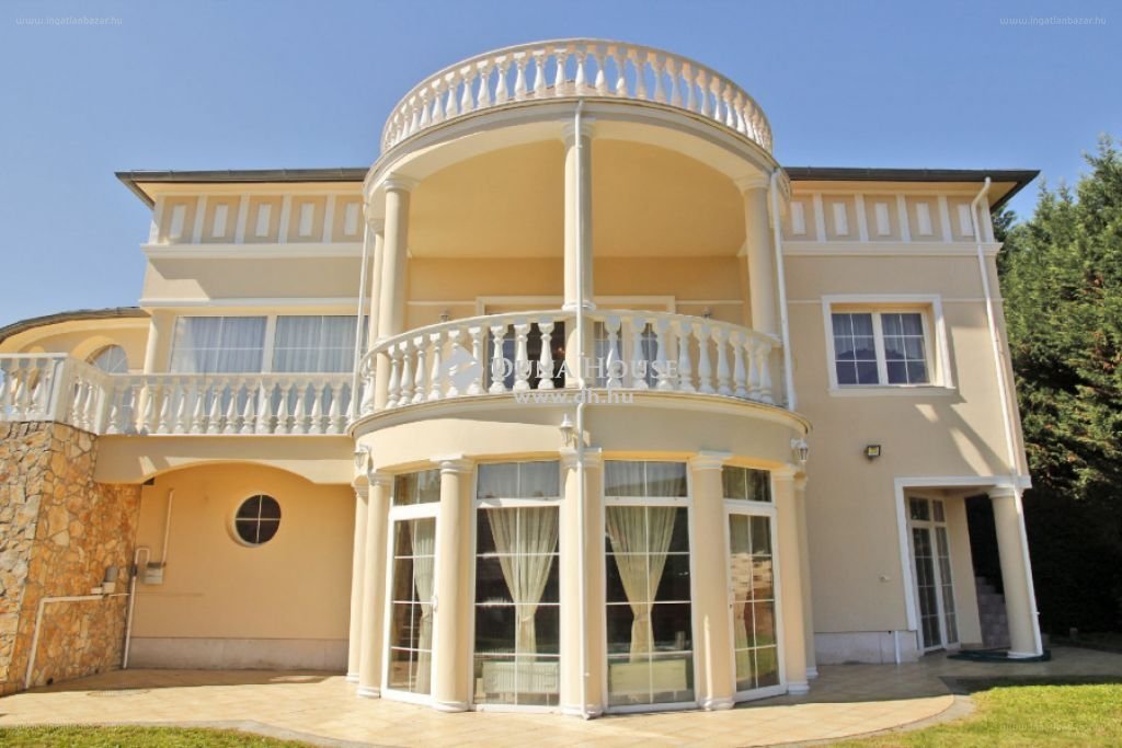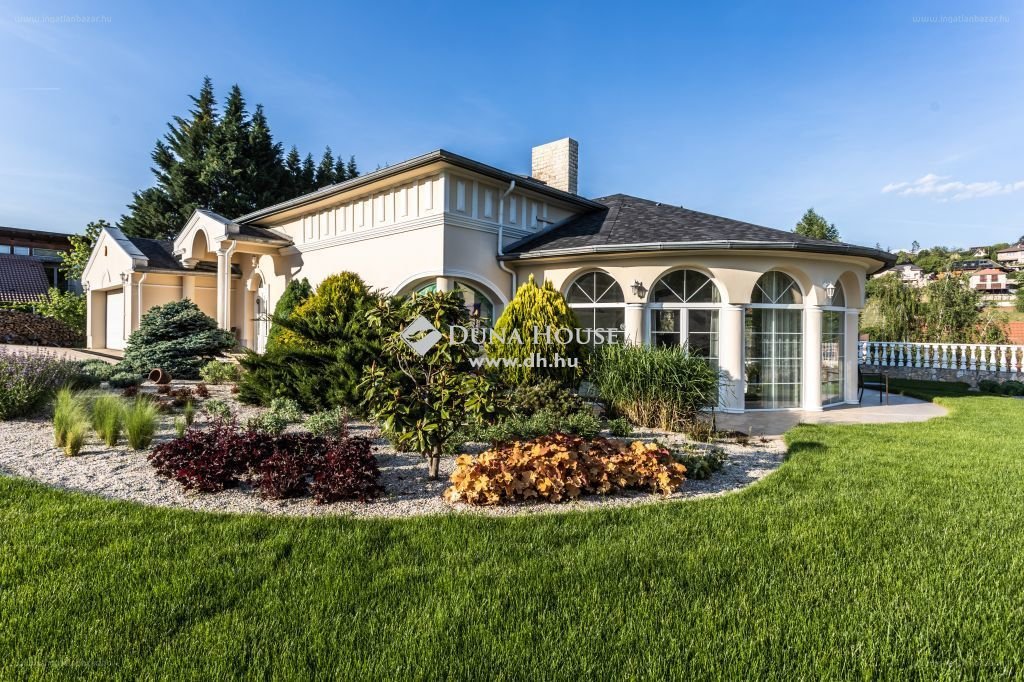 “Pécs zöldövezeti, családi házas részén, egy impozáns 3 szintes , egyedi stílus jegyeket hordozó 440m2-es luxus villa 2600m2-es parkosított, öntöző rendszerrel ellátott telken, amiben kerti tó és egy nagyméretű waterair típusú medence lett elhelyezve .