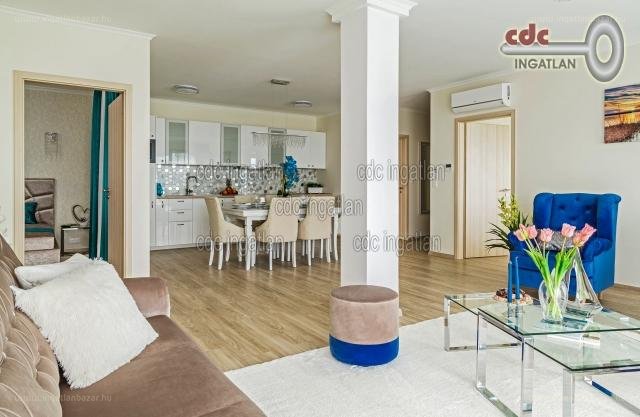 „A lakás azonnal költözhető és élvezhető, tökéletes állapotban van, igényesen berendezett, kivitelezett: vadonatúj konyhabútor beépített konyhagépekkel (légkeveréses sütő, indukciós főzőlap, mikrohullámú sütő, páraelszívó, beépített mosogatógép és hűtő) áll az új tulajdonos rendelkezésére, látványos, dupla mosdós, kiváló minőségű, szabadon álló kádas és egy üveg kabinos fürdőszoba szolgálják a kényelmet. A fűtésről és a hűtésről a legmodernebb hőszivattyús LG rendszer gondoskodik egyedi szabályozással és méréssel, valamint padlófűtés is kialakításra került. A lakás külön mérőórákkal (víz, villany) rendelkezik.
