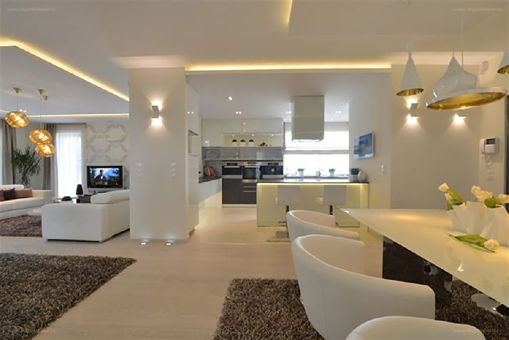 – felső kategóriás MIELE gépek, különleges konyha, üveg ajtófrontokkal, egyedi svédpadló, csodálatos szaniterek, csempék, lámpák stb.,