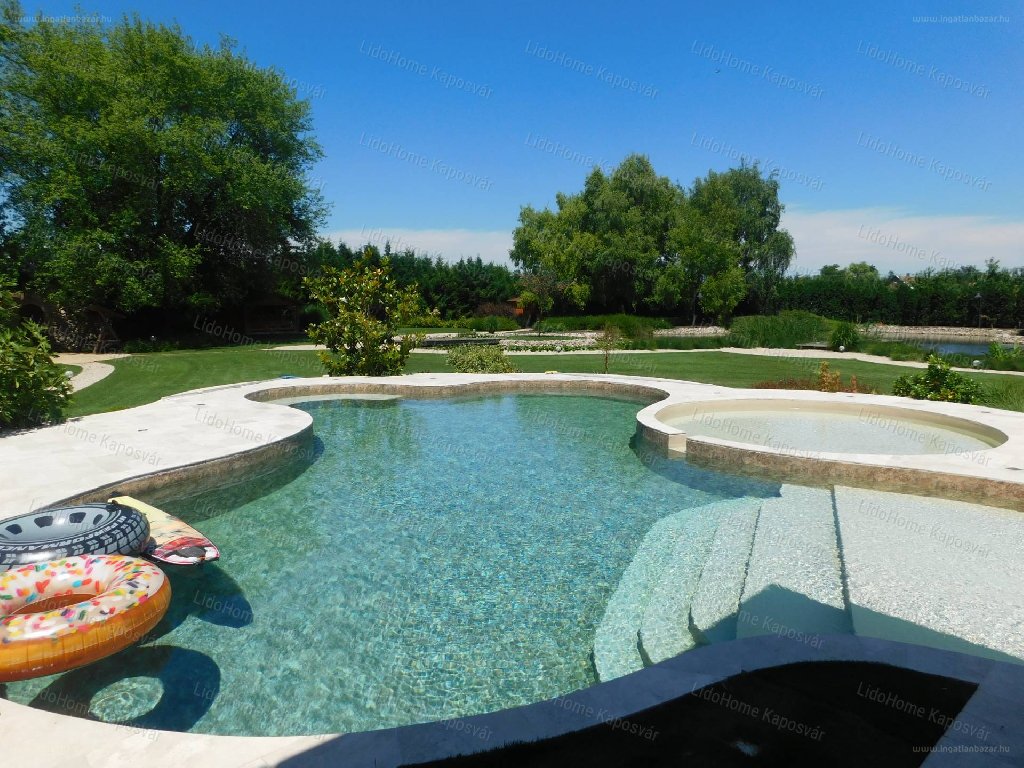 Csend, nyugalom, béke uralja az ingatlant! A lakó ingatlant belső építészek által kialakított, gondosan megtervezett ingatlan, összhangban egymáshoz illő bútorokkal láttak el. Magas luxus minőségű berendezésekkel, beépített bútorokkal, hatalmas kandallóval, szaunával, luxus fürdőszobákkal, hatalmas tágas gyönyörű amerikai konyhás 120 m2 nappalival láttak el. A lakó ingatlan 258 m2 alapterületű, padló fűtéssel, kandallóval. A külső terasz vörösfenyőrönkökből ürömi mészkőből készült fényáteresztővel, 75 m2 + 60 m2 egy síkban a medence körül. Dísztó sziklakőből, csobogó éjszakai világítással. Csodálatos környezettel ellátott luxus ingatlan, kényelmes otthona lehet következő tulajdonosának. […]