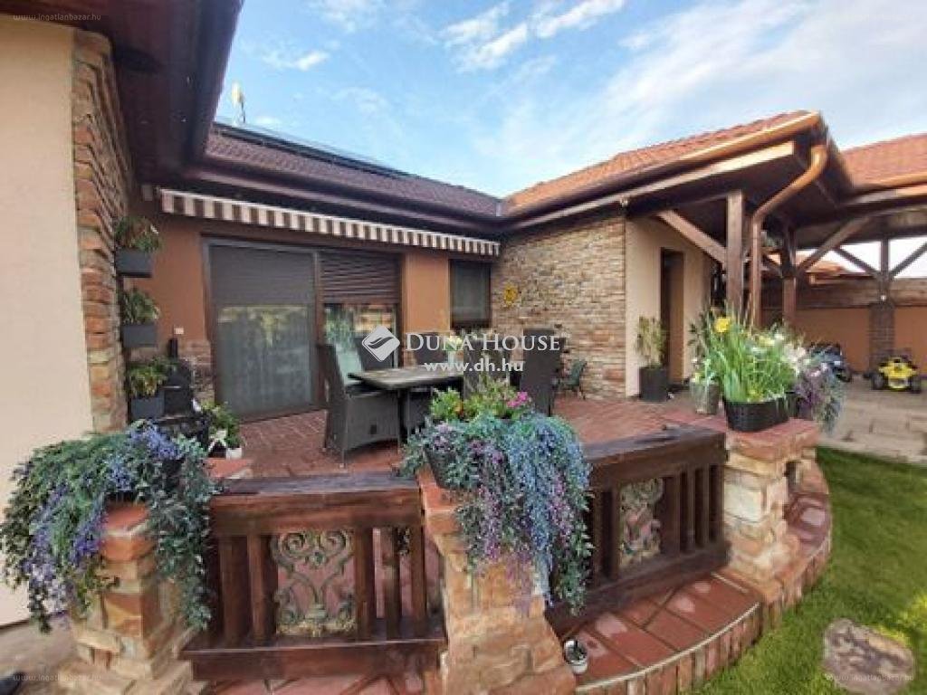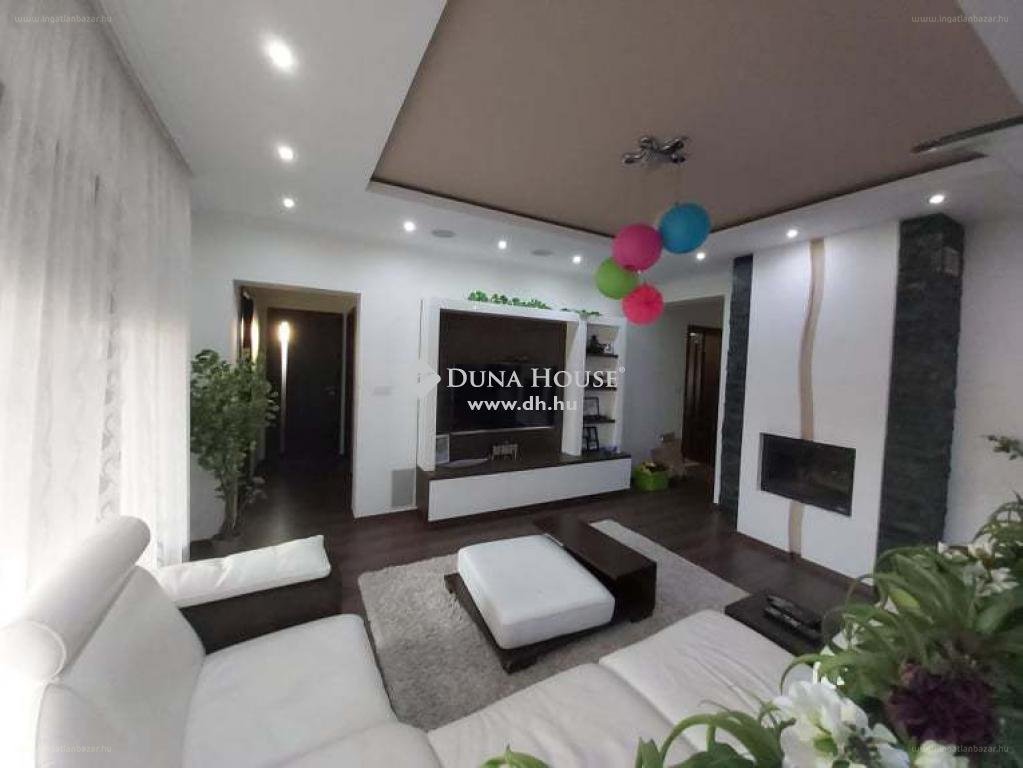 “Nyíregyháza-Oros között eladó egy luxus kivitelű, intelligens, 2014-ben épített, 3 hálószobás+ amerikai konyhás, nappalis, padló és kandalló fűtésű, 2 fürdőszobás, 120 m2-es ikerház, 17 m2 garázzsal és 24 m2 es fedett terasszal, fedett kocsi beállóval, automata kapuval, parkosított udvarral, öntöző berendezéssel ellátott kerttel, filagóriával, szalonnasütővel, wellness részleggel. […]”