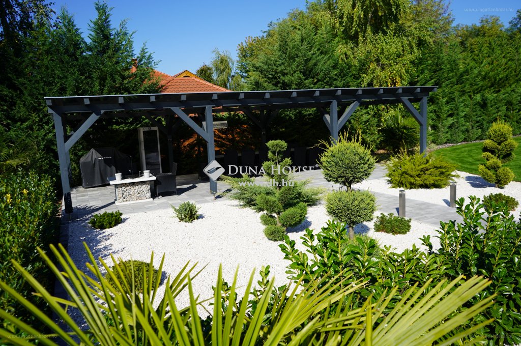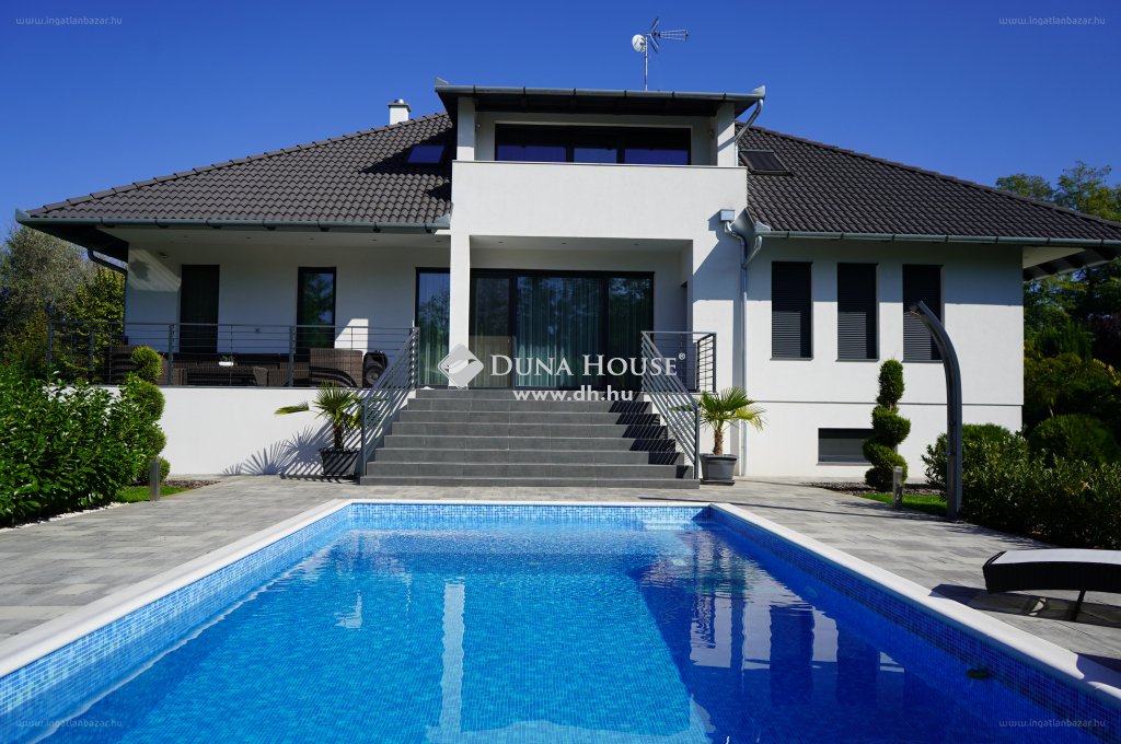 Hatalmas üvegfelületek rendkívül tágas és világos érzettel töltik meg az egész házat. A nyílászárók távirányítós biztonsági alumínium redőnyökkel felszereltek! A fűtésről zárt égésterű kondenzációs gázkazán gondoskodik hőtárolóval. A hűtésről, szellőztetésről egy helyiségenként szabályozható prémium minőségű szellőztetőrendszer gondoskodik. A ház 38cm-es porotherm tégla falazattal rendelkezik, 20cm-es szigeteléssel. A válaszfalak 20cm vastagságúak. A teljes kert automata öntözővel ellátott, ahol egy 8×4 méteres igényes medence, egy nagy méretű fedett szaletli valóban privát luxus környezetet teremt. Az udvarban több autó számára van férőhely. A teljes biztonságról kiépített kamera és riasztórendszer gondoskodik. A ház területére lépve azonnal érezzük, hogy minden prémium anyagok felhasználásával valósult meg. […]”