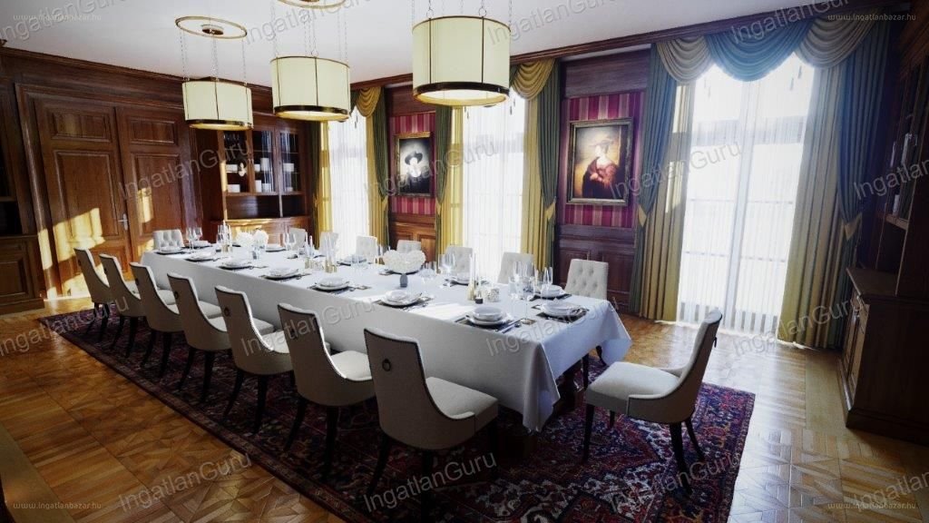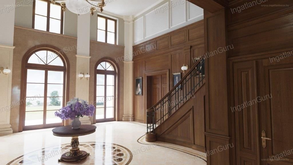 Az emeletre 2 db íves lépcső vezet fel, három lakrész található, melyben nappali, háló és fürdő lett tervezve. Az épületet hatalmas teraszok veszik körül. A területen városi víz, villany és a gáz is megtalálható. A tervezett napkollektoros rendszer a háztól távolabb kerülne elhelyezésre. A hatalmas területen egy csodálatos park kialakítására van lehetőség. A látványtervekből is látszik hogy minden gondosan eltervezve, így a befejezésben segítségére lehet az új tulajdonosának. […]”