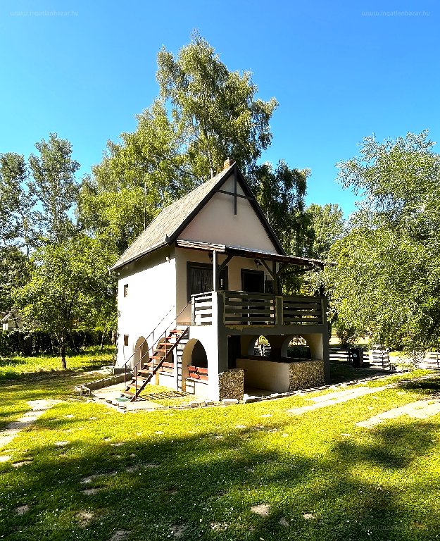 Itt kínálunk eladásra egy kiváló állapotú nyaralót. A Véneken álló ház az árvízvédelemnek köszönhetően magas lábakon áll, alatta árnyékos pihenő kapott helyet. Hangulatos terasza csodás zöld udvarra néz. Életterét a kandalló teszi kifejezetten otthonossá, konyhája, fürdője kompakt, de remekül használható, hálófülkéje pedig a galérián kapott helyet. Ez az ingatlan alapvetően egy nyaraló, de minimális ráfordítással nagyon könnyen egy négyévszakos otthonná varázsolható távol a város zajától. […]”