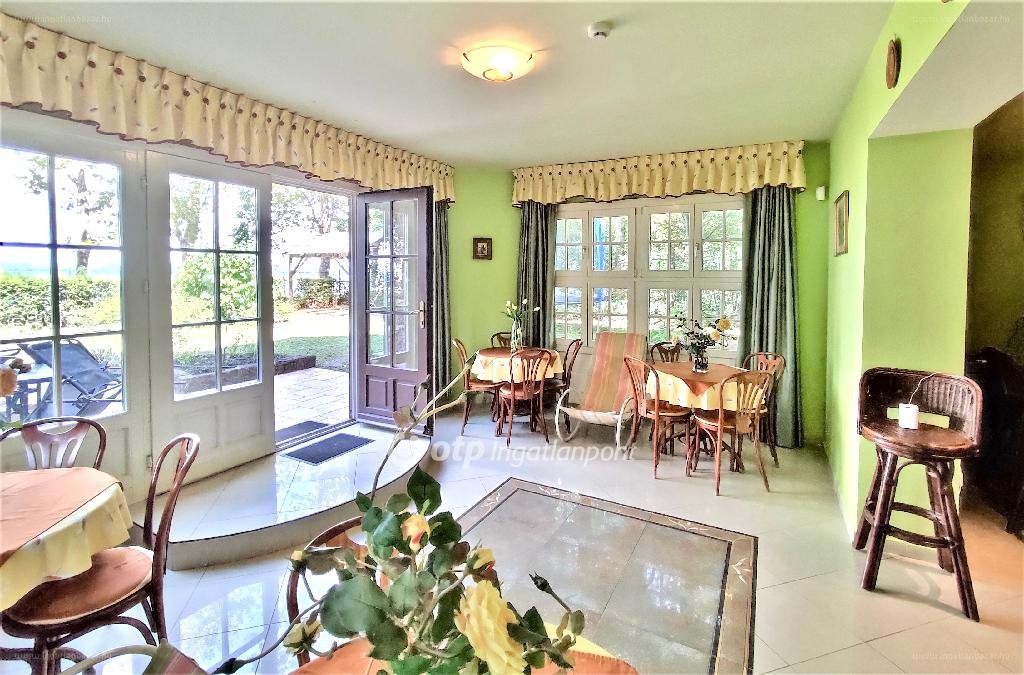 A 400 m2-es épület földszintjén fogadótér, nappali-étkező-bár, konyha, wellness helyiség, háztartási helyiség került kialakításra, az emeleten és a tetőtérben pedig kényelmes méretű külön bejáratú szobák saját fürdőszobával, és billiárdszoba találhatók. Az emeleti szobák a kertből, a tornácra vezető lépcsőn közvetlenül is megközelíthetőek. Az épület legtöbb helyisége, 5 háló, a billiárdszoba, a nappali-étkező, konyha ablakai egyaránt a Balaton felé néznek.