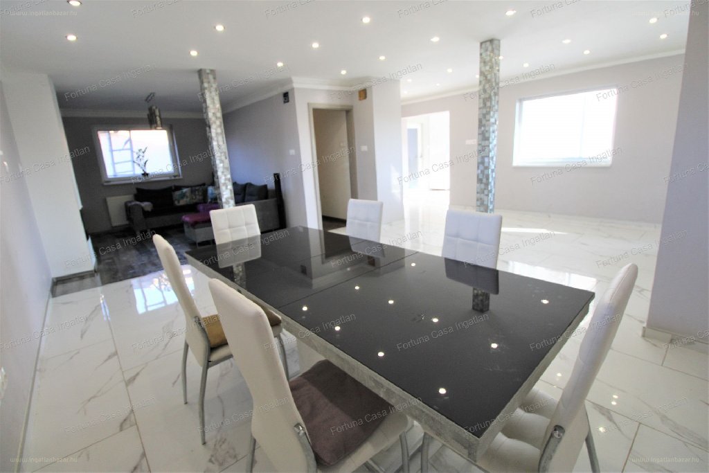 “Kecskeméten a város zajától csendes, jól megközelíthető helyen 250 nm-es 7 szobás családi ház 2334 nm-es telken eladó. A meglévő 98 nm-es vegyes falazatú kecskeméti házat remek megoldással bővítették további kb. 150 nm-el 2021-ben. Így a nagycsalád számára megfelelő mennyiségű szoba és fürdőszoba kialakítását valósították meg. A terület biztosíthatja medence, halastó kialakítását a terület parkosítását.
