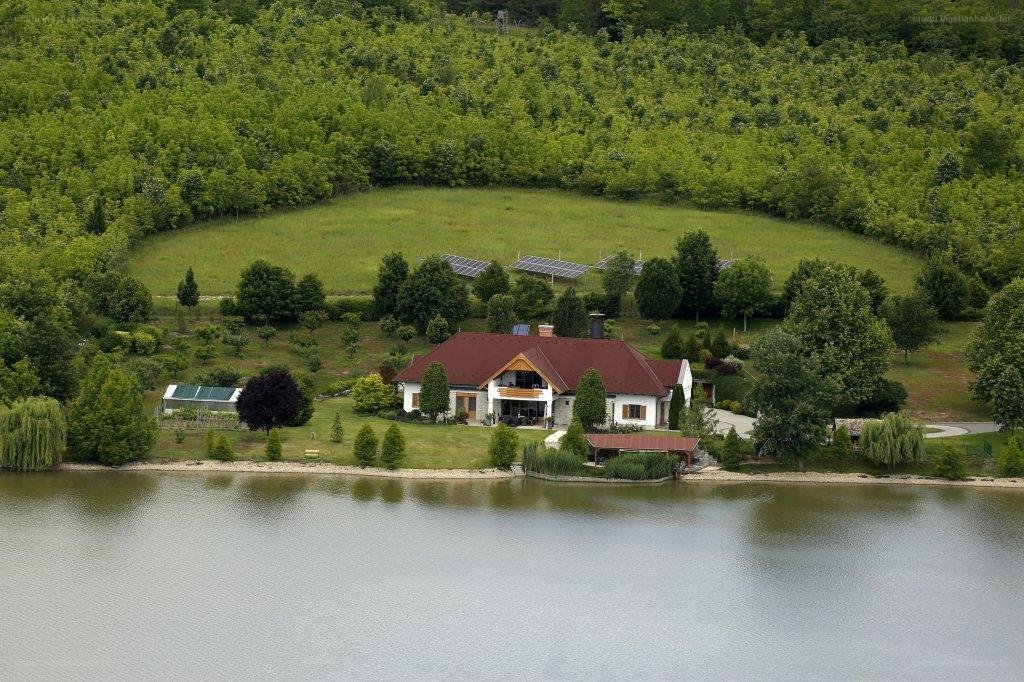 A lakóingatlan 780 m2-es kétszintes épület, ami egy magántulajdonban álló hatalmas tó partján fekszik, főépület körül egyéb építményekkel -pince, -fatároló/műhely, -grillező helyiség, -fedett kutyakennel, a kerti részen üvegház található.
