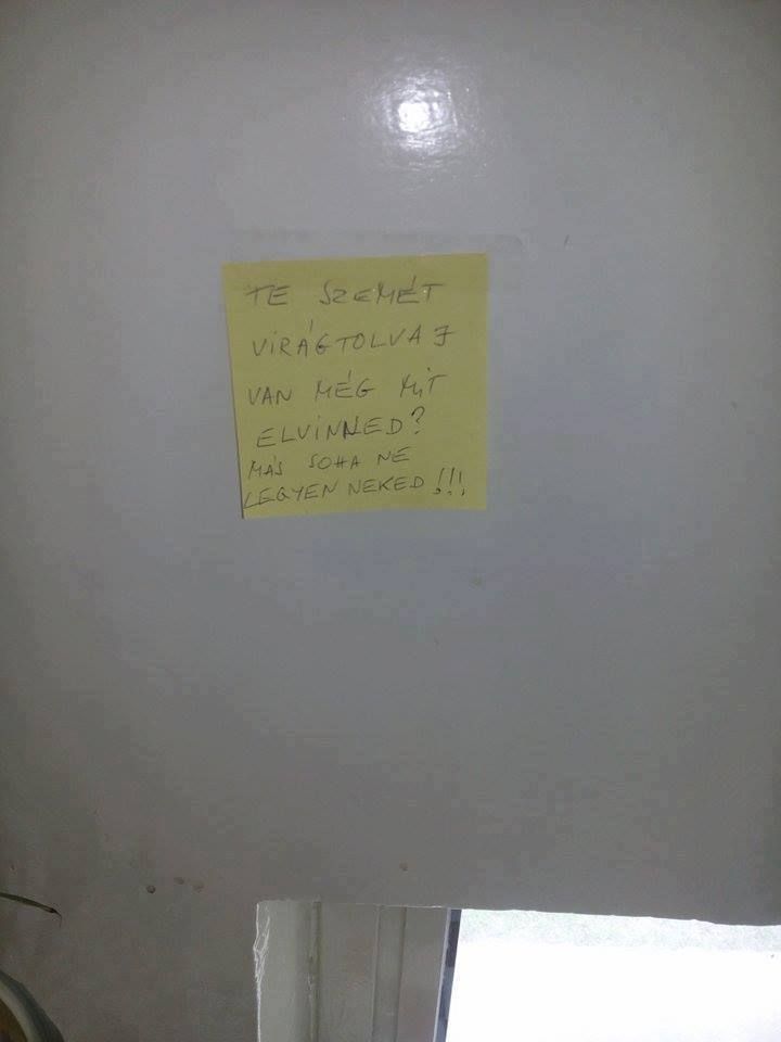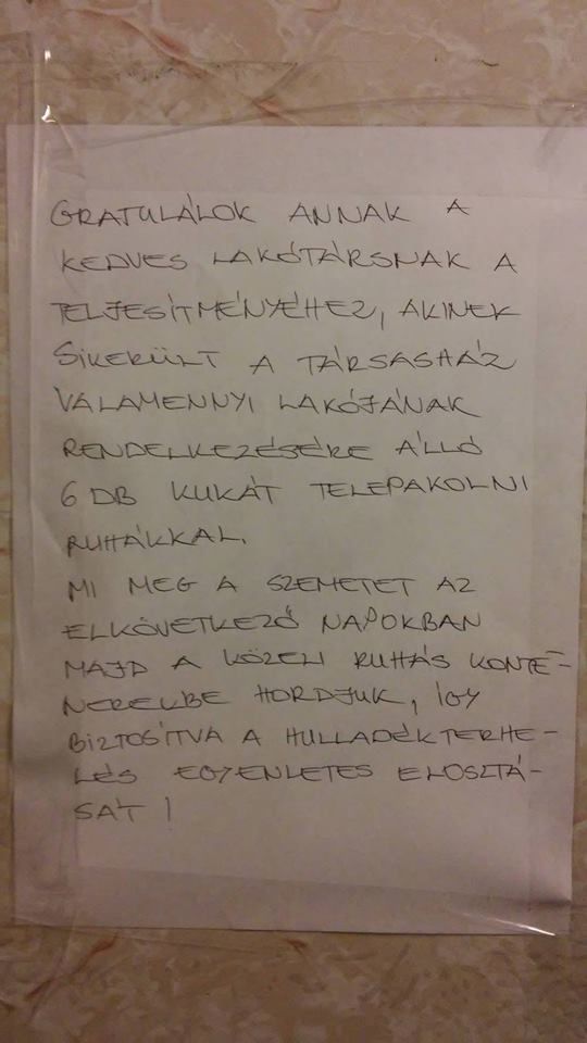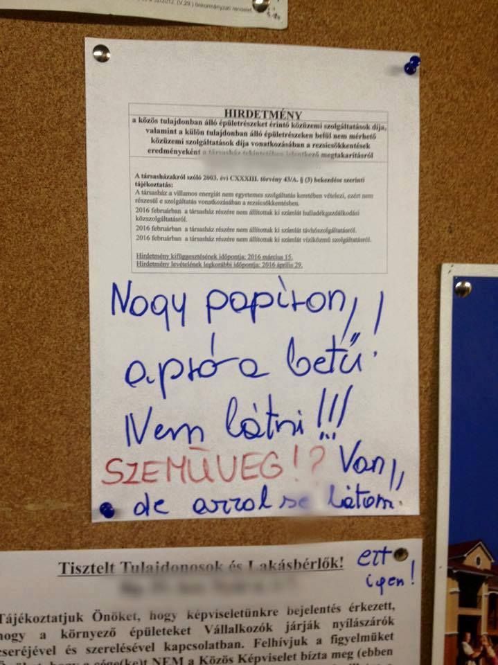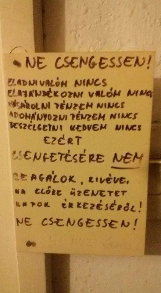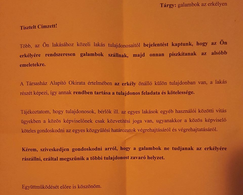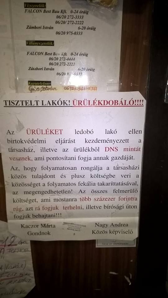 ingatlanbazar.hu 2016. április. 05. kedd A sorozat nem állhat meg... Sok-sok sérelem és rengeteg irodalmi alkotás: jöjjön 10 gondolat lakóktól, lakóknak. cikk megosztásaMegosztásTárgy: galambok az erkélyen Elfogyott... Sok felkiáltójel Teljesítmény. Szemüveg!? DNS mintát vesznek!Ez nem vicc. Átok.Őszinteségből jeles.És egy happy end. Forrás: Pesti cetli