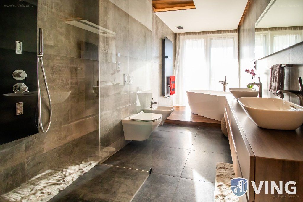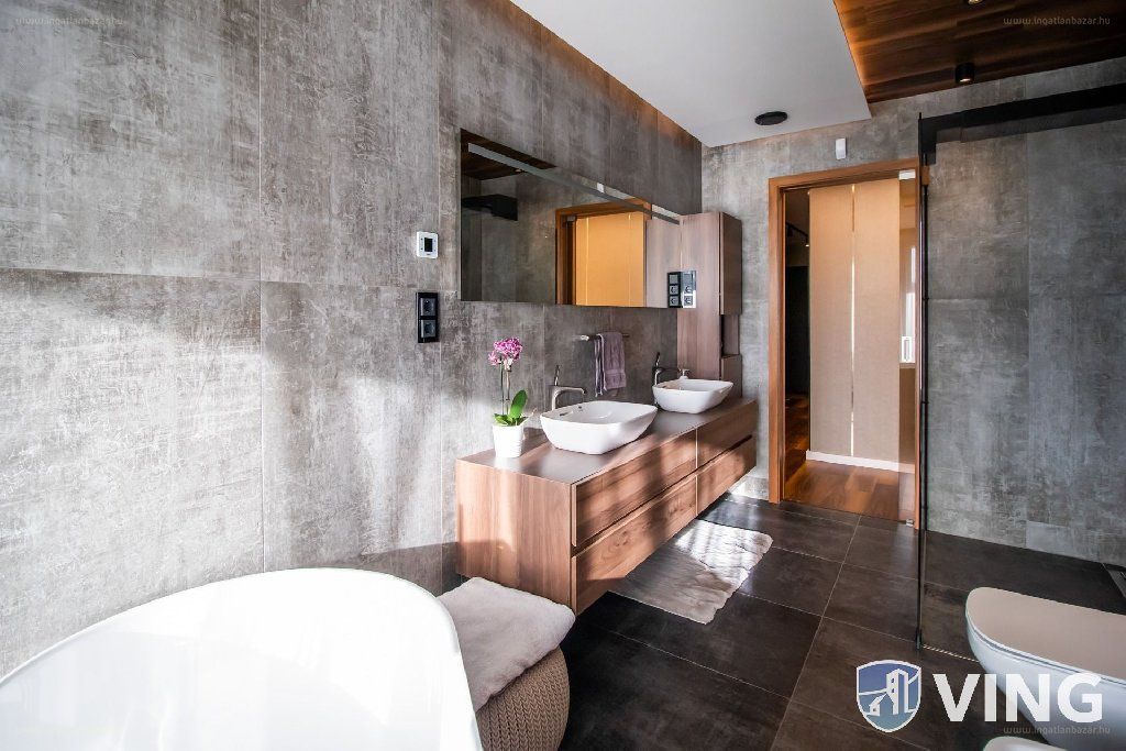 A házat és benne ezt a lakást a legmagasabb műszaki szintű alapanyagokból építették. A fűtés korszerű, energiatakarékos, hőszivattyús padlófűtéssel van megoldva. A hűtés pedig hőszivattyús fal- illetve mennyezethűtéssel. Az ablakokon motoros zsalúziák gondoskodnak az árnyékolásról. [...]”
