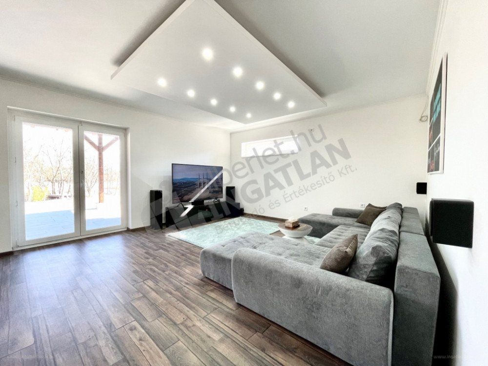 “Székesfehérvár közelében ÚJÉPÍTÉSŰ, LUXUS családi ház KERTI TÓVAL eladó! Székesfehérvár és Velencei-tó között elhelyezkedő Seregélyes településen épült a modern családi ház 2021-ben. M7-es autópályán Balaton illetve Budapest is könnyen megközelíthető, barátságos, kultúrált a környezet. Saját használatra, minőségi anyagok felhasználásával épült a ház, ebből kifolyólag a tér elrendezés kifejezetten élhető. A konyha és fürdőszobabútorok egyedi tervezés alapján készültek minőségi, időtálló anyagokból.